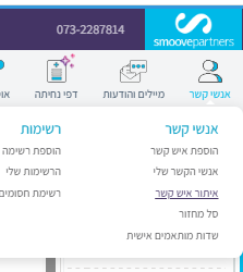 בשלב ראשון נכיר את "מנוע החיפוש" של מערכת smoove הנקרא: "איתור אנשי קשר", ונמצא תחת תפריט 'אנשי קשר'.