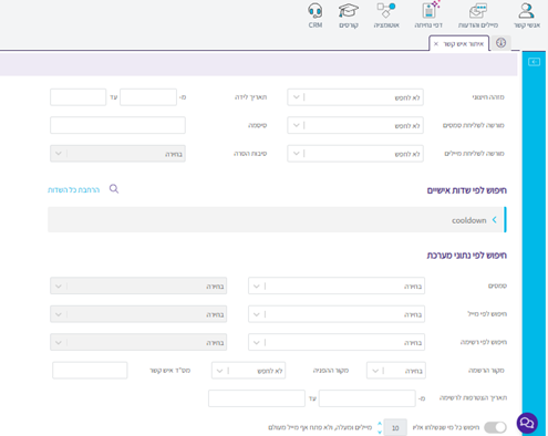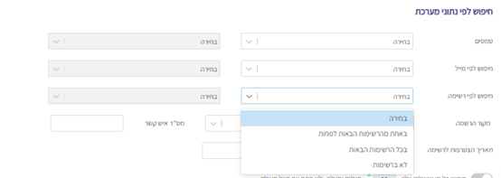 הקלקה על קישור זה תפתח לנו מנוע חיפוש המאפשר סינון של כל נתון ונתון הקיים במערכת שלנו: