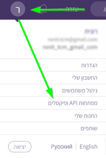 העתק מפתח והדבק במערכת החיצונית בתוך השדה הרלוונטי ( בהתאם להגדרות המערכת).