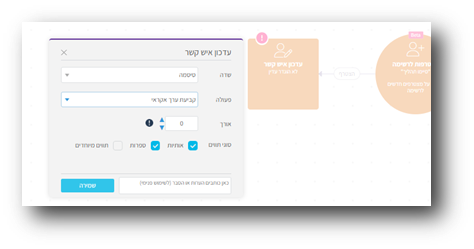 * נוסיף פעולה "עדכון איש קשר" – נבחר את שדה הסיסמה ונגדיר כי המערכת תייצר אקראית סיסמה. כאן נוכל להגדיר את כמות התווים, סוג התווים וכו':
