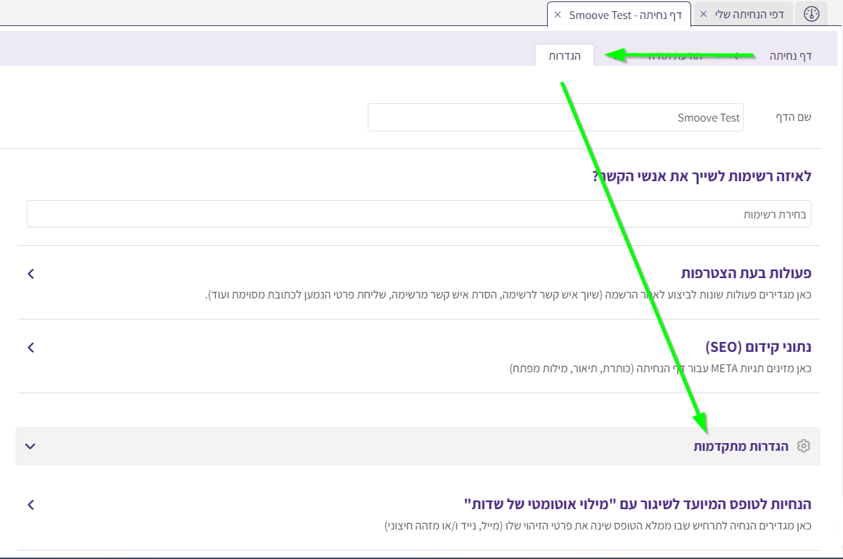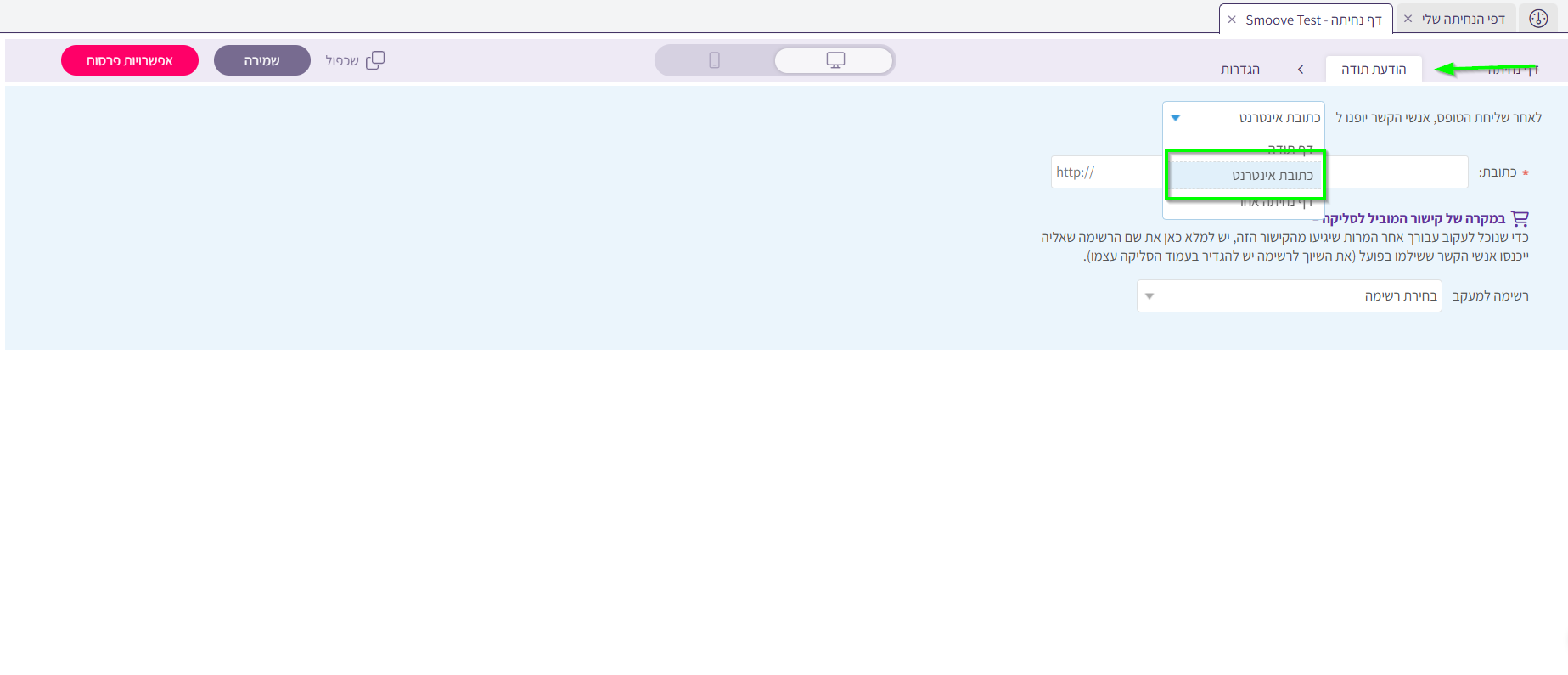 4. הגדרת פנייה ל"דף נחיתה אחר"