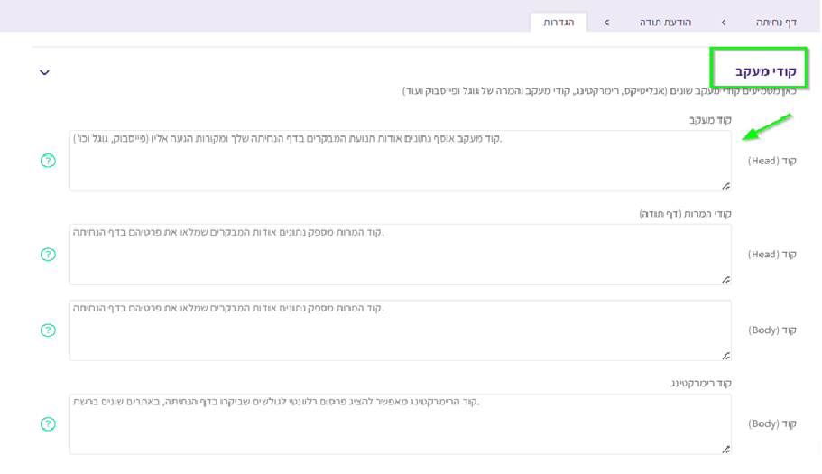 9. הטמעת קודי המעקב בכתובת האינטרנט הרלוונטית על פי המדריך -