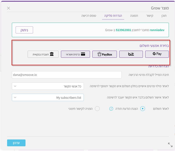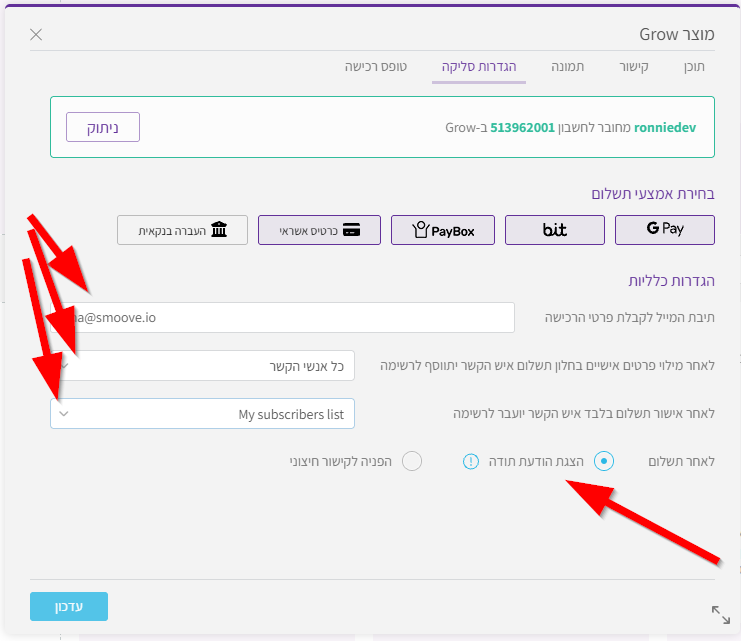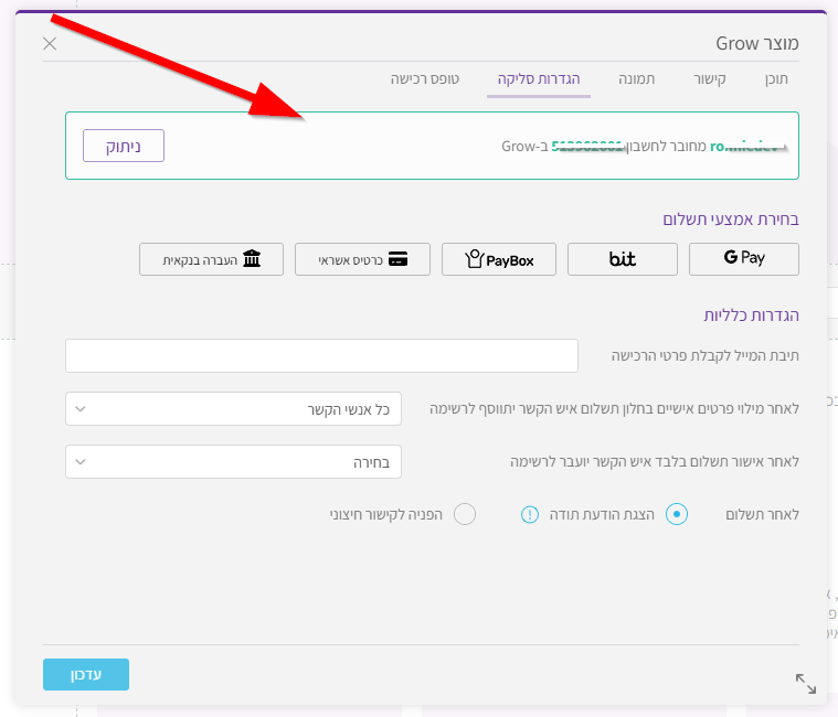 במדריך הנוכחי נסביר כיצד לחבר את דף הנחיתה לסליקה של חברת GROW.