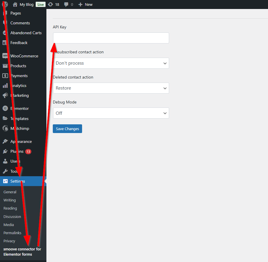 לאחר מכן ניגש חזרה למיפוי השדות בתוסף של smoove ונמפה את שדה אל אישור הדיוור של smoove